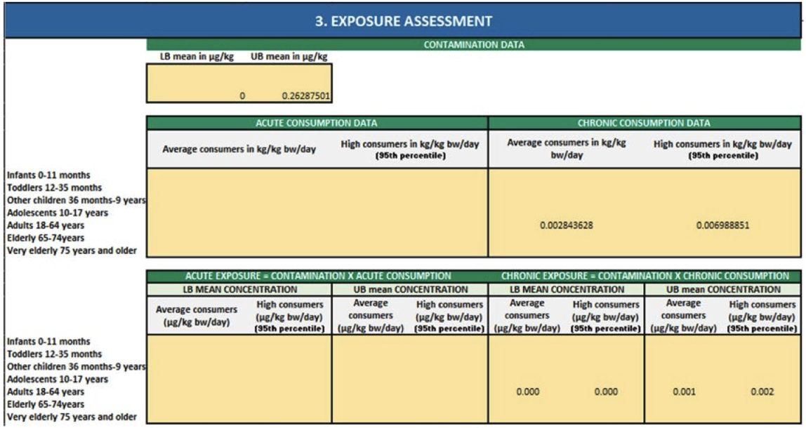 Background. Mycotoxins pose a significant threat to food safety especially in low-income settings by contaminating staples like maize and groundnuts. Risk assessment plays an important role in understanding the magnitude of the risks attributed to exposure to these hazards via food consumption. To improve food safety and guide evidence-based mitigation strategies, the UP-RISE project validated a risk assessment toolkit originally developed under the H2020 FoodSafety4EU project. Validation used mycotoxin data from public sources, including the WHO’s food safety collaborative platform database.